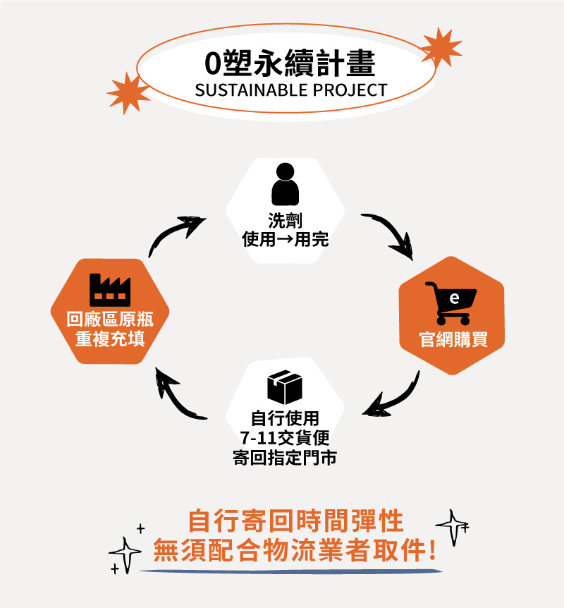✸寄回之鋁瓶請勿做額外的清潔清洗,請確保瓶中除了殘餘的洗衣精之外,無其他液體及水分,避免充填後洗衣精遭細菌汙染。